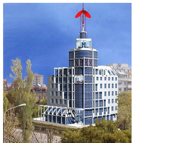 Интересът на чуждестранните инвеститори към България даде ход за реализация на т.нар. ”Иммобул офис център”, собственост на австрийския концерн “Immoconsult Leasinggeselschaft” Gm.b.H., чийто филиал в България-”Immobul - ltd”, закупи през 1999 г. празен парцел на ъгъла между бул.”Тотлебен” /сега”Цар Борис III”/ и ул.”Баница”. По-късно в инвестиционния процес се включи и израелската компания “BSR-group” с опит в управлението на подобни инвестиции. Представеният проект, по който се построи самата сграда, е резултат на проведен през пролетта на 1999 г. конкурс между 10 проектантски колектива, който успяхме да спечелим при, бих казал, силна конкуренция. Намеренията на Инвеститора, както в програмата на конкурса, така и в заданието за проектиране, бяха повече от окуражаващи - Административна сграда със запомнящ се, впечатляващ вид с високи архитектурно-естетически достойнства при използване на качествени, високоефективни материали и съоръжаване с инсталационни системи, отговарящи на най-съвременни стандарти. Сградата се намира на ъгъла между бул.”Тотлебен” /сега”Цар Борис III”/ и ул.”Баница” като бе въведена в експлоатация през 2001 г. в присъствието на кмета Софиянски и посланика на Република Австрия.